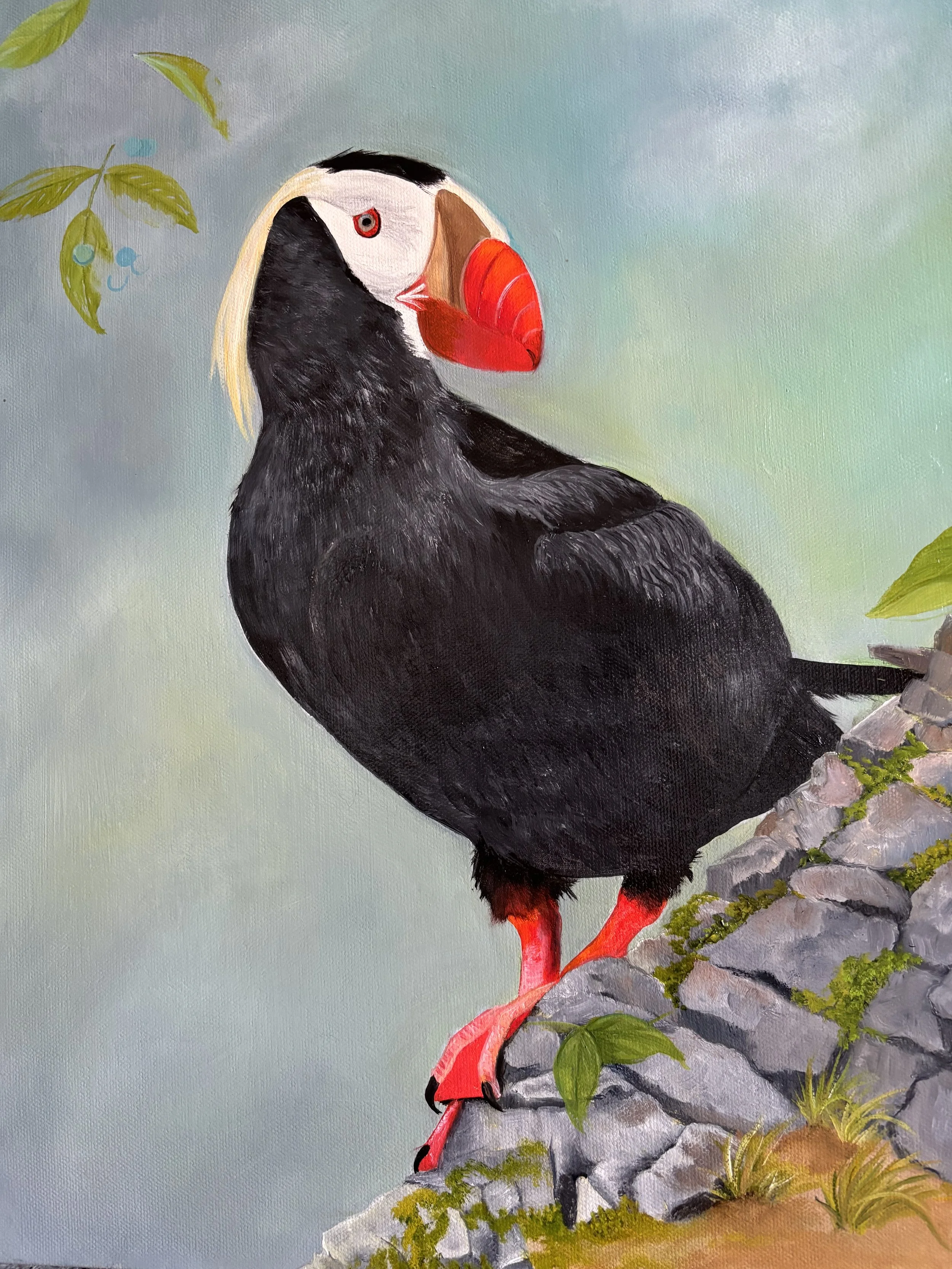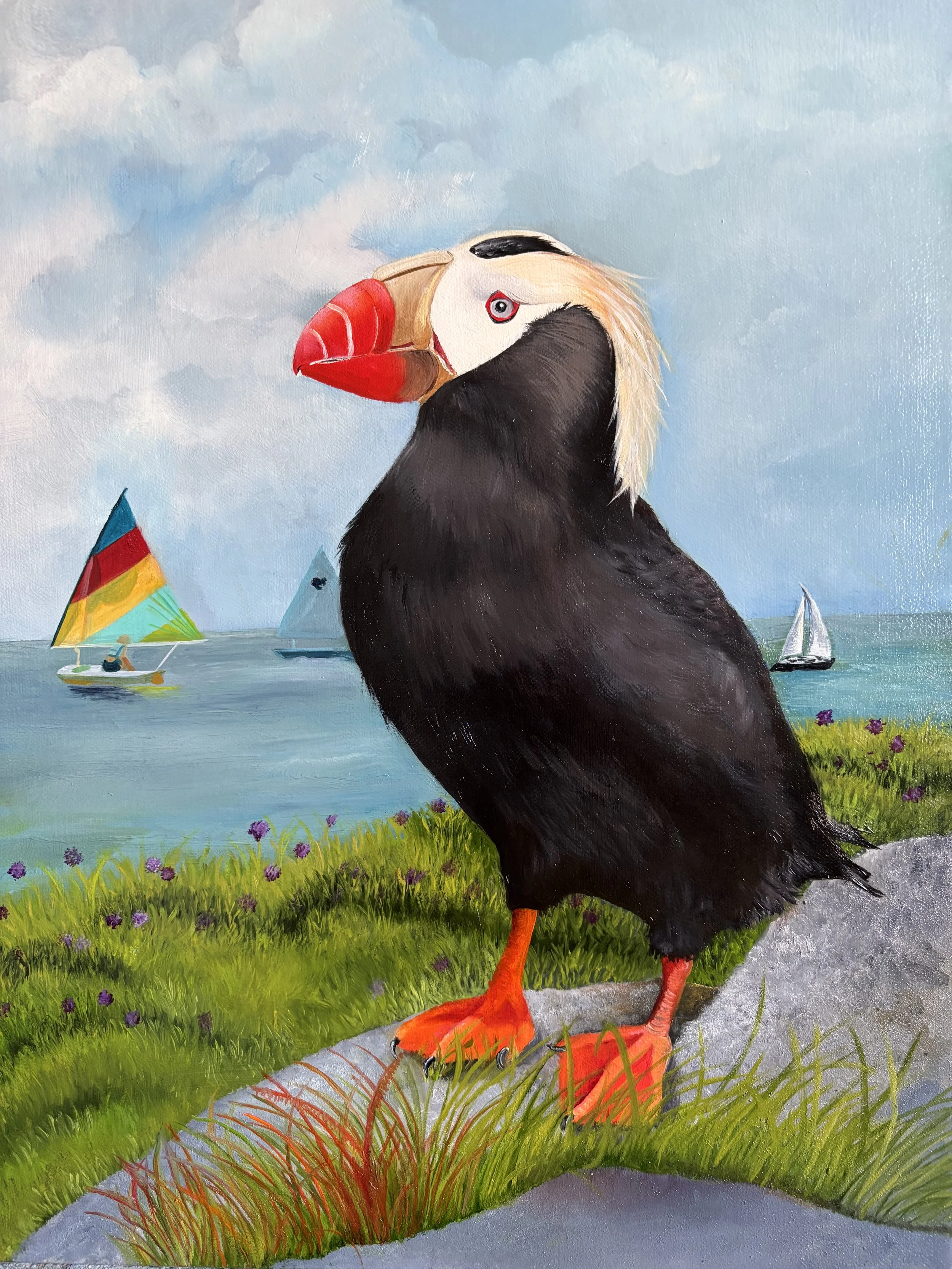 .Mary Parkes is an Oregon artist who sees joy and happiness in what she chooses to paint. Her delightful artworks exude a passionate perspective that is expressed as a necessity to paint in order to lead a full life. Her paintings lean on the cusp of surreal as animals are often depicted in fantasy situations or imagined painterly settings. Parkes’ overall passion for painting can be seen in the delicate and compassionate treatment of subjects.
